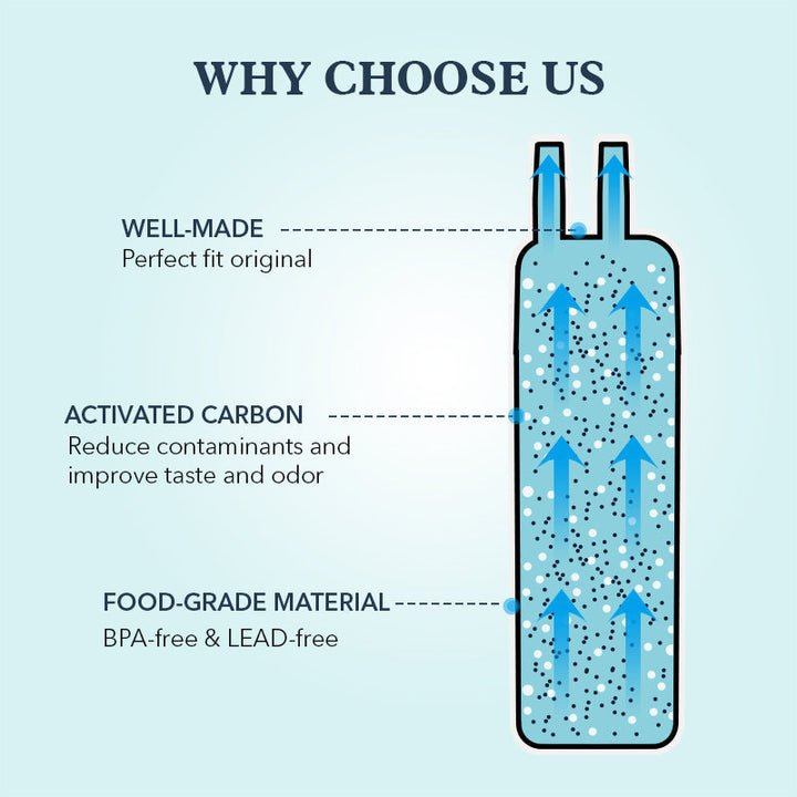 The carbon contains a porous material that absorbs potentially harmful contaminants, leaving you with clean, clear, better tasting water and ice for you and your family.