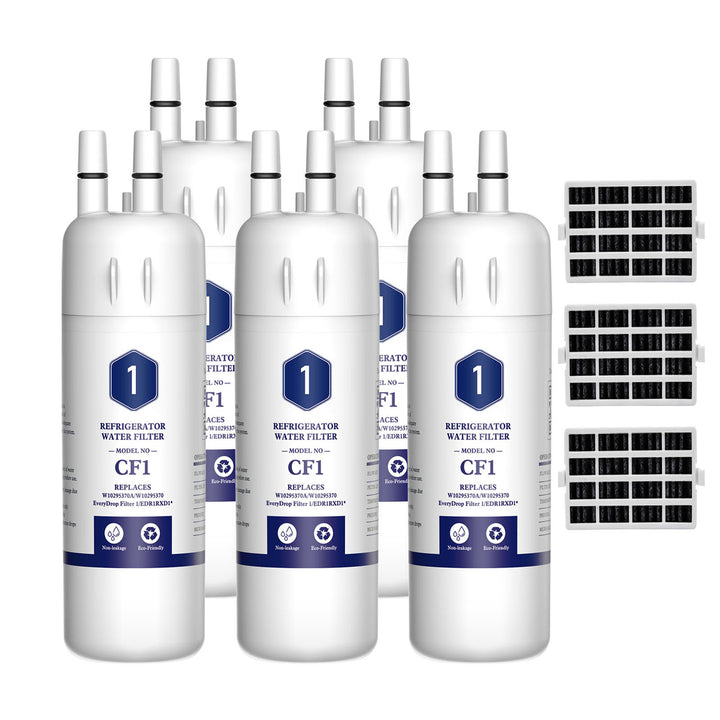 This refrigerator water filter 1 could reduce 24 impurities in water as well as other harmful contaminants. The fridge filter is compatible with Everydrop Water Filter 1, W10295370A, EDR1RXD1 Water Filter and 9081 Water Filter. We recommend to replace the filter every 6 months to ensure the filtration performance.